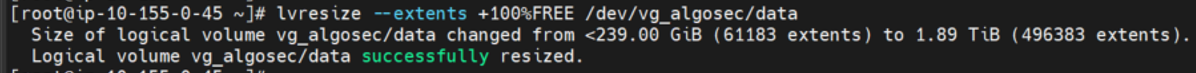 lvresize --extents +100%FREE /dev/vg_algosec/data