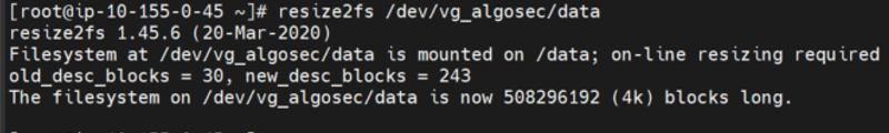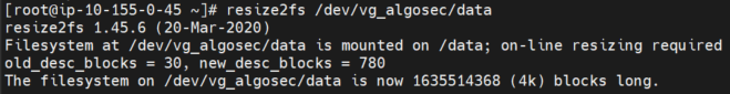 resize2fs /dev/vg_algosec/data