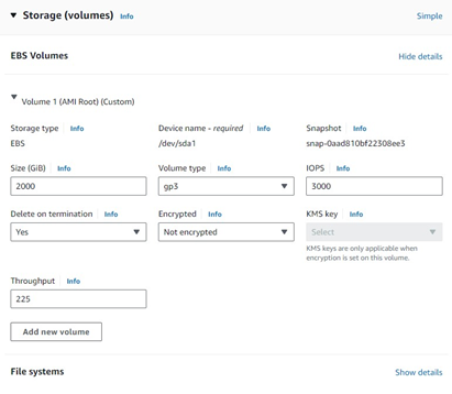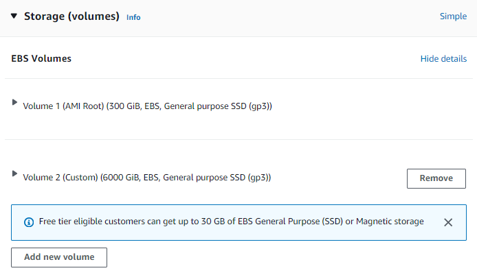 During the Add Storage phase of the setup process, add a new disk on your AWS instance.