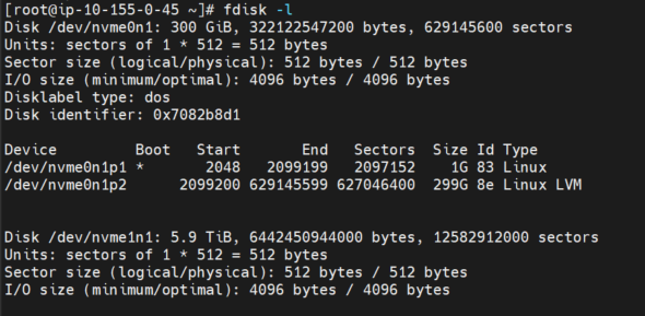 Verify the new partition is present inside the new disk nvme1n1 by running: