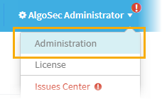 If you are a user in multiple AlgoSec products, such as AFA, FireFlow, AppViz, ObjectFlow, and AppViz, switch between products using the dropdown at the top-left, above the main menu.