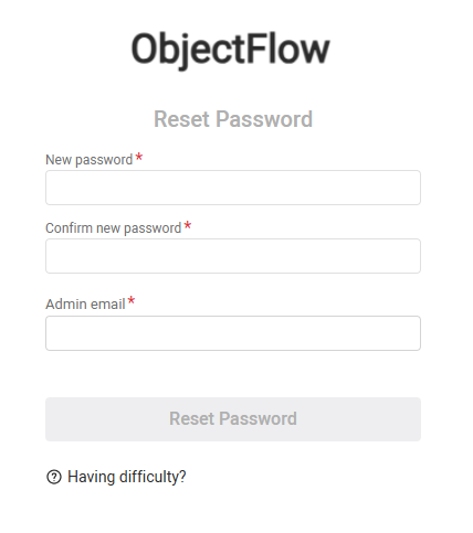 ObjectFlow prompts you for a new password.