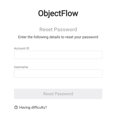Log into ObjectFlow using the Account ID (Tenant ID) provided with your purchase.
