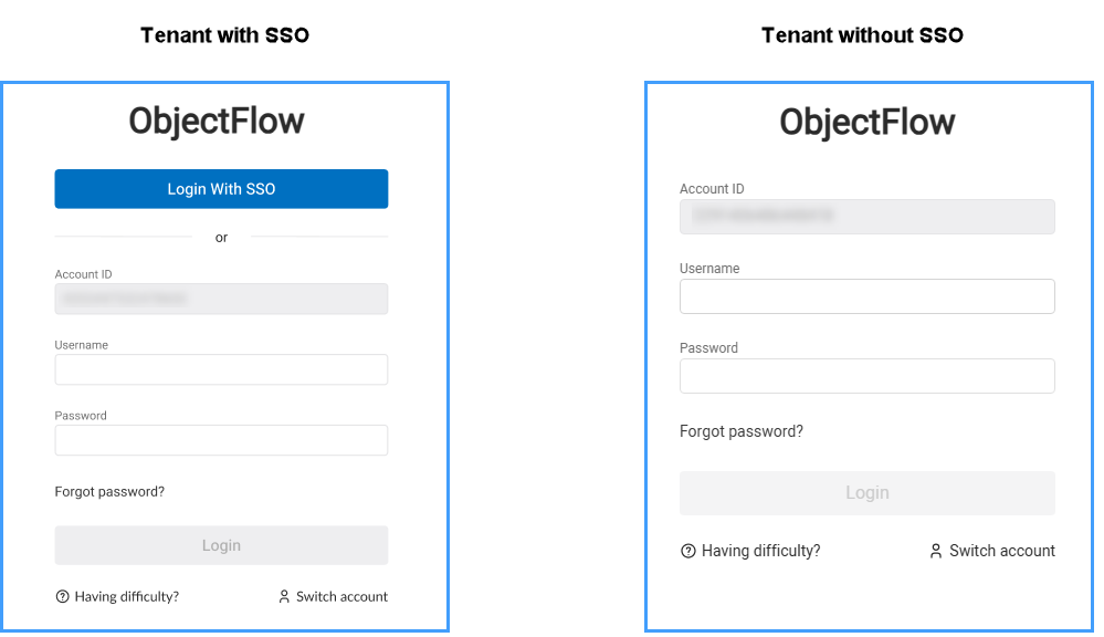 With SSO: Immediately logs you in to ObjectFlow.