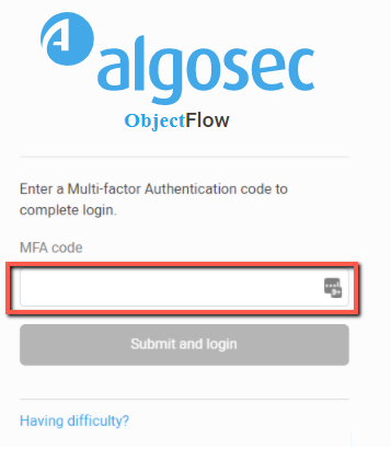 If this is your first time logging in with Multi-Factor Authentication (MFA), the interface will guide you to set up your MFA device and login using MFA for ObjectFlow for the first time. For details, see First login as MFA user .