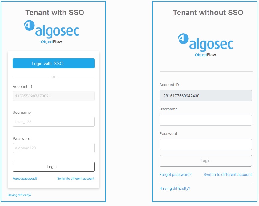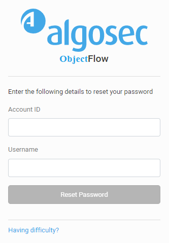If you do not have your account ID or username, contact AlgoSec customer support.