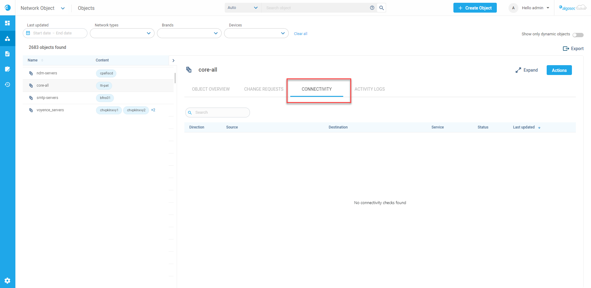 Object connectivity checks