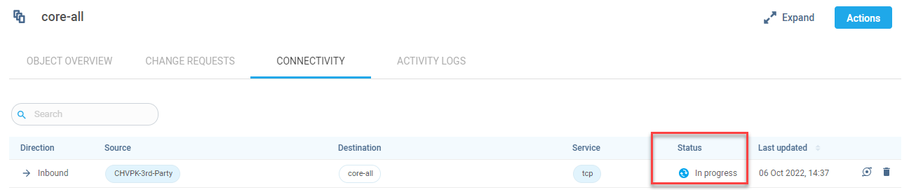 On the CONNECTIVITY tab, click Actions.