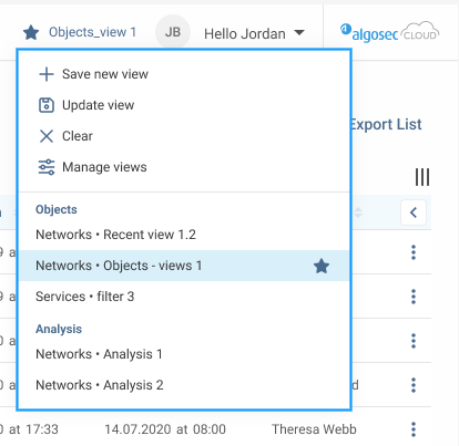 Important: The Saved Views functionality is currently supported on the Objects page and on all tabs of the Analysis page (except Similar Groups).