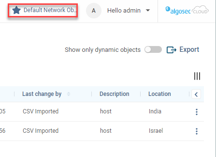 The object type (network or service) selected (for the Objects page)