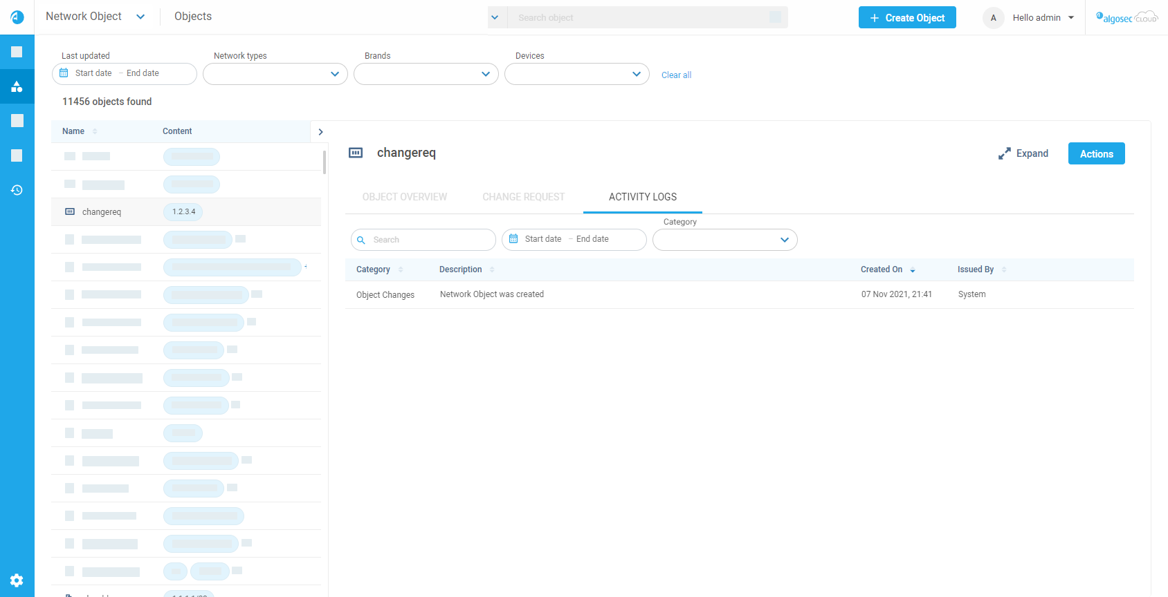 Click an object in the list to see its activity log details. You can select directly from the Objects Found list or by using filters.