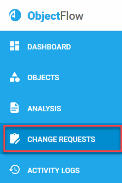 In ObjectFlow, from the main menu on the left, click CHANGE REQUESTS.